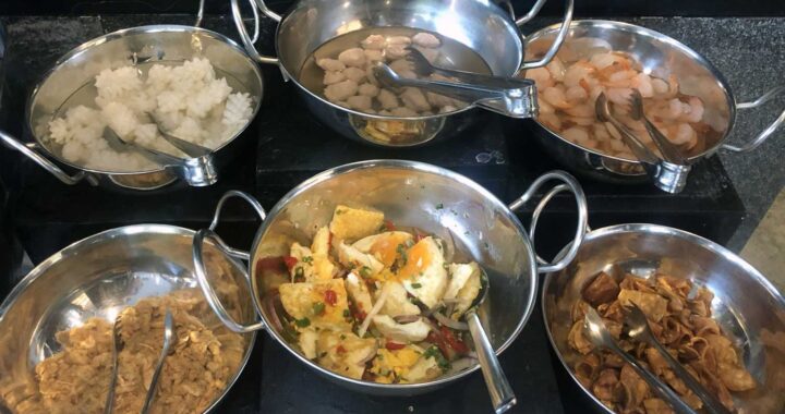 Night before last we checked into the Khaohom Resort and it turned out to be a cute little, super clean, roadside motel-style accommodation near Srimahapho. The operators there spoke no English but we managed to communicate anyways. Too exhausted after our 106k day to seek food so we looked at a takeout menu they had and with the help of google translate selected a dish and hoped for the best. A half hour later the friendly Thai guy on the motorcycle brought our food right to our door with steaming hot pots full of shrimps with glass noodles, along with real plates & cutlery. Such a nice experience. That wonderful young Thai man assured us (with the very little English he knew) that he was there ALL night and would watch our bicycles ALL night while we slept. He then did his rounds on his bicycle, diligently riding up and down the length of the row of rooms (there were only about 10), ensuring ours, and the other two guests’ security.