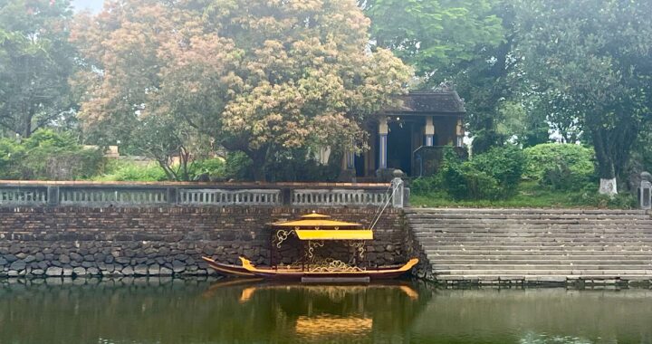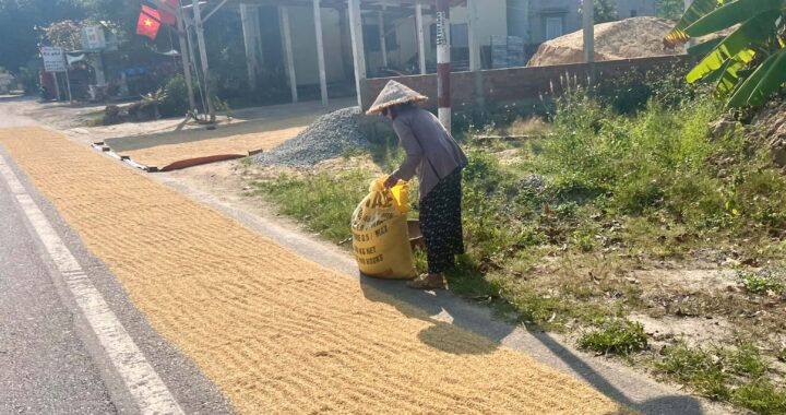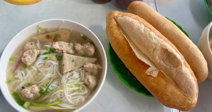 Days start out hot & humid. Low 30’s at 9am and no cloud cover. Riding along, we scan roadside stands for bánh mì and a place to sit for a reprieve from sun. Found! The lady didn’t speak English (and we still don’t speak Vietnamese) but we delivered our entire vocabulary. “Xin chào! bánh mì?” Her face lit up and she talked a mile a minute to us, pointing and revealing she had pork noodle soup in the cauldron. We scored some pork Pho for breakfast (plus the bánh mì we sought). She was so excited about our presence that she took pictures of us from all angles, and sat directly in front of us eating some bread herself, giggling the while. We were her only two customers and we are certain she videoed us while eating too, but it’s okay. We understand—we are a novelty. She laughed with delighted encouragement when she saw we knew to drop the greens & sprouts into the soup and stir it around. She proudly assisted us by spooning in a little of this & that to season the Pho.