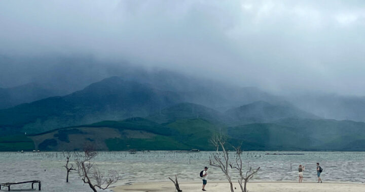Pre-inspecting the beach at Nhà Trắng to decide if we stay, or go