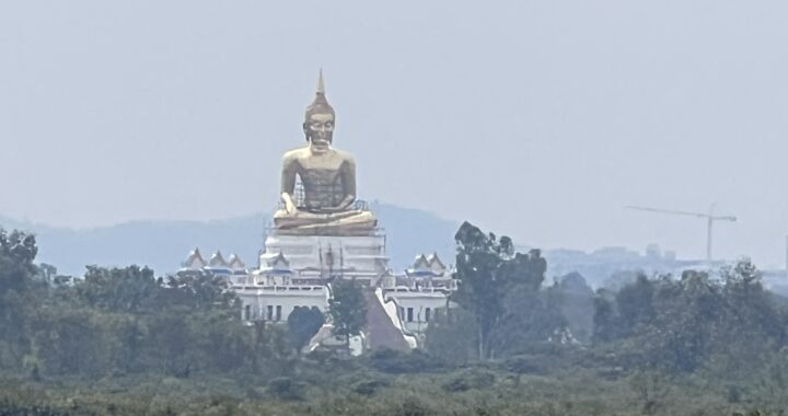 The day wasn’t boring, just uneventful. But we still saw cows laying in a watering hole to keep cool, a dude cutting down rice in an impossibly large field all alone, and we saw a corn-picking farm machine that looked more suitable for a carnival than a functioning farm. And of course , there was a really big ginormous gold Buddha that was visible for miles around. Another lovely day in this beautiful country.
