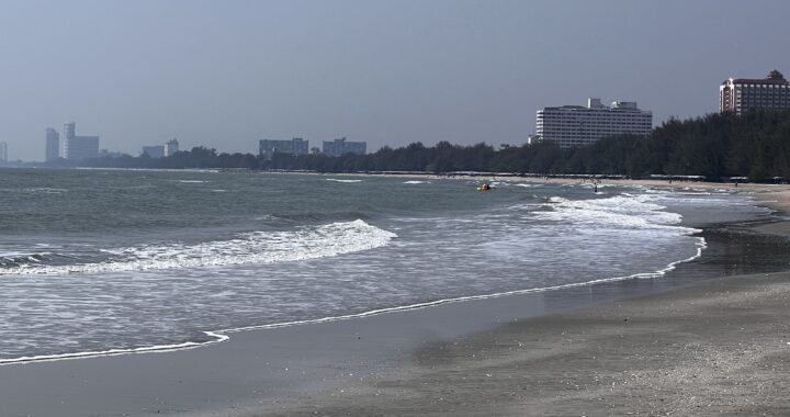 Nice & easy ride today! The closer we got to the touristy area of Cha Am Beach, then Hua Hin, we saw fewer soi dogs (except for the scrappy brave one that decided Randy should NOT be there on the bike path) and the more English signage was around to help us decodify words. We finally got a menu that had some reasonable English translations to help out our wholly inadequate brains. Therefore, we were able to order up a crab omelet, coffee, spring rolls and fries!