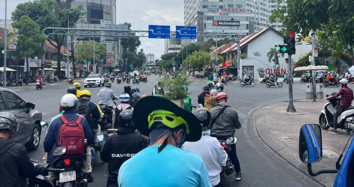 Since arriving in Vietnam we have connected with a number of two-wheeled or two-footed others who are roaming the country. We have come to know names-in-a-group-chat, exchanged tips & advice and shared small stories. Last night we had an informal meetup with those who also find themselves in Saigon. Minus Dane, who is in Saigon but feeling under the weather, so we missed him. Assemble a group of like-minded tourists, the conversation feels like that of old friends. It doesn’t take long for our uniquely shared issues to surface—food (Pho), laundry, underwear, odd menu translations, even stranger foods, trứng vịt lộn (Balut—a fertilized developing egg embryo that is boiled or steamed and eaten from the shell), riding “stinky”, and the joys of a peanut butter sandwich at just the right time.