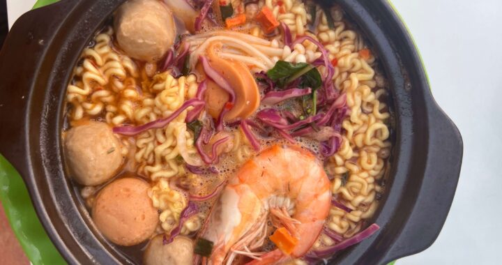 We are likely the only westerners in town. No English menus or signage to be found, but happy people everywhere watching, laughing, smiling at us as we walk the street looking for dinner. A lady was cooking up a pot of something roadside. Because we could see and identify the ingredients (and since she was the only gig open), we purchased a bowl of something-or-other and sat down at the kindergarten chairs to nourish ourselves. Talk about being the center of attention while you eat. All eyes on us! And no forks this time—we are deep into the Vietnamese way of eating in this town. Chopsticks & a spoon.