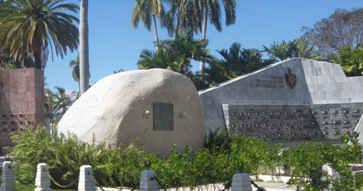 We hired a human powered bicycle cart (we felt just a little wrong having someone pedal us around in the heat, but he was quite insistent) to take us on a small tour up to the Cemeterio Santa Ifigenia to view the massive important cemetery and it’s most revered occupants. Fidel Castro lays in rest next to the mausoleum of national hero José Martí. Fidel is reported to have requested no monuments or statues in his honour, and thus a very big boulder marks his place with just “Fidel” inscribed on a plaque.