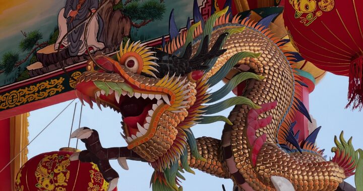 Every town or city has a wat (temple), but this one was different. It looked Chinese in style, and was stunning both in size, and decor. Shiny, glittery, red & gold. We each stood around in awe of Wat Phet Suwan., a Chinese style Buddhist temple. There appeared to be a monk sitting motionless inside, perched up high, surrounded by all things beautiful.